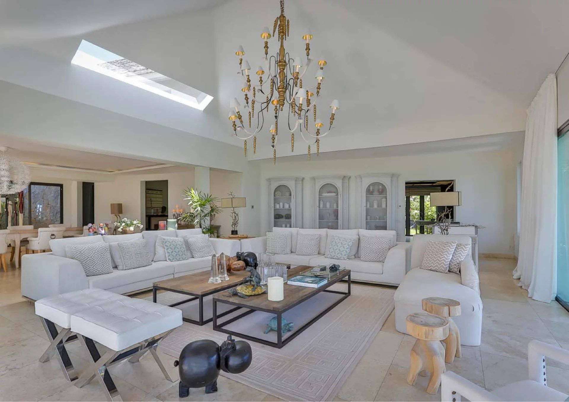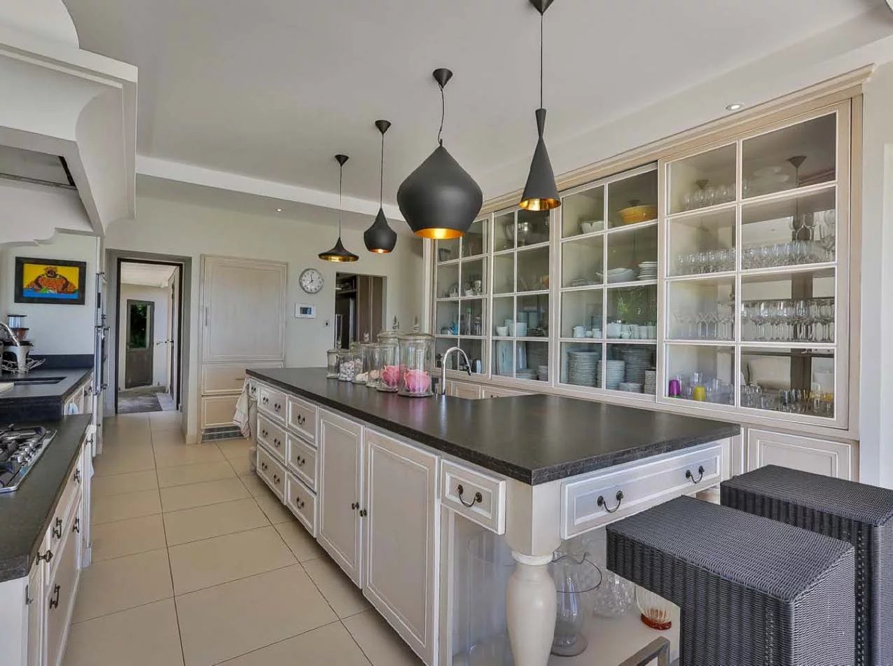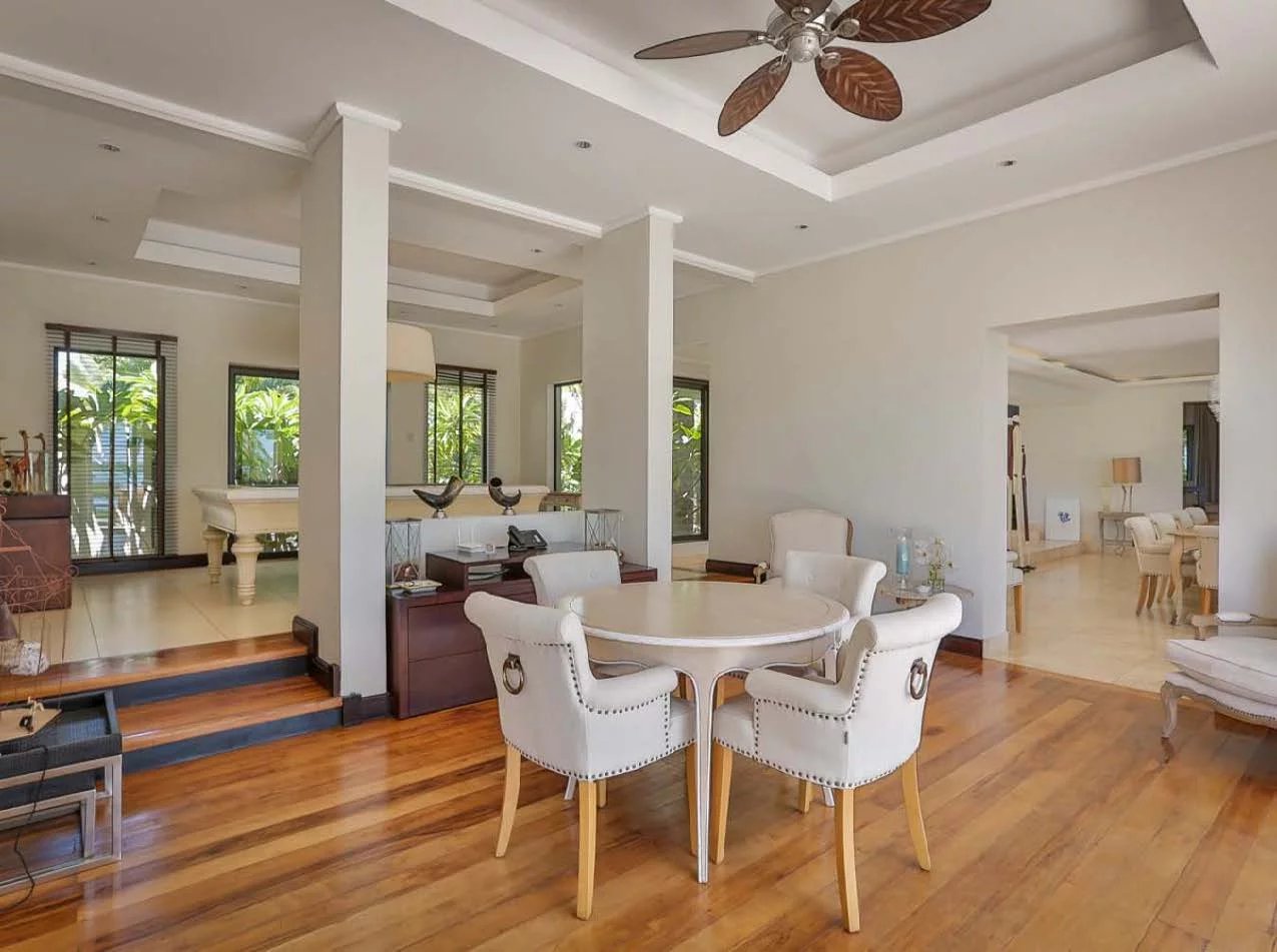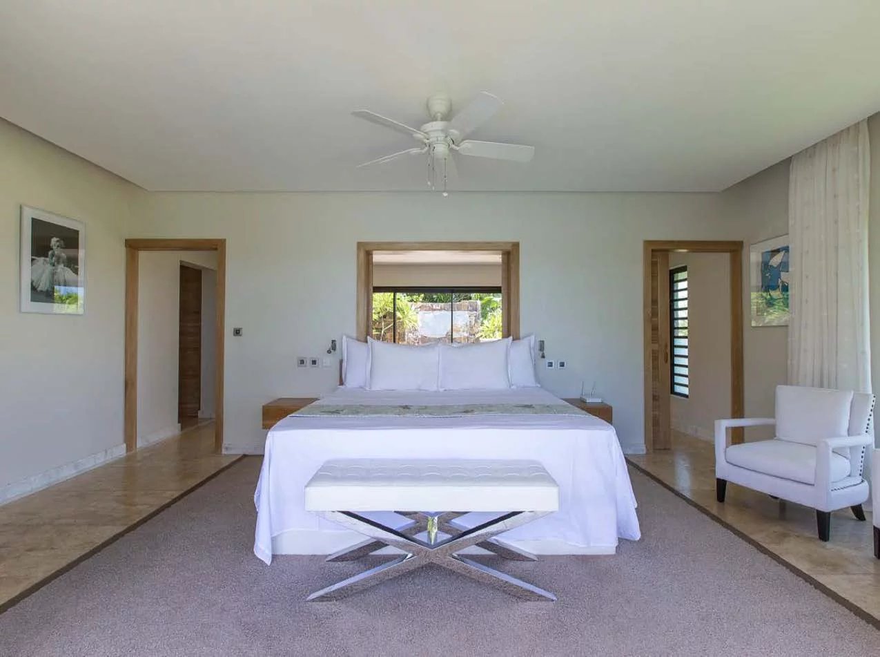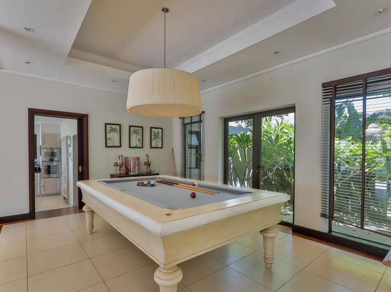 Cette villa de 850 m² offre des volumes remarquables et un cadre de vie privilégié, sublimé par une vue dégagée sur l’océan et le parcours de golf. Elle dispose de six chambres, dont plusieurs suites, offrant confort et intimité à chaque occupant.
