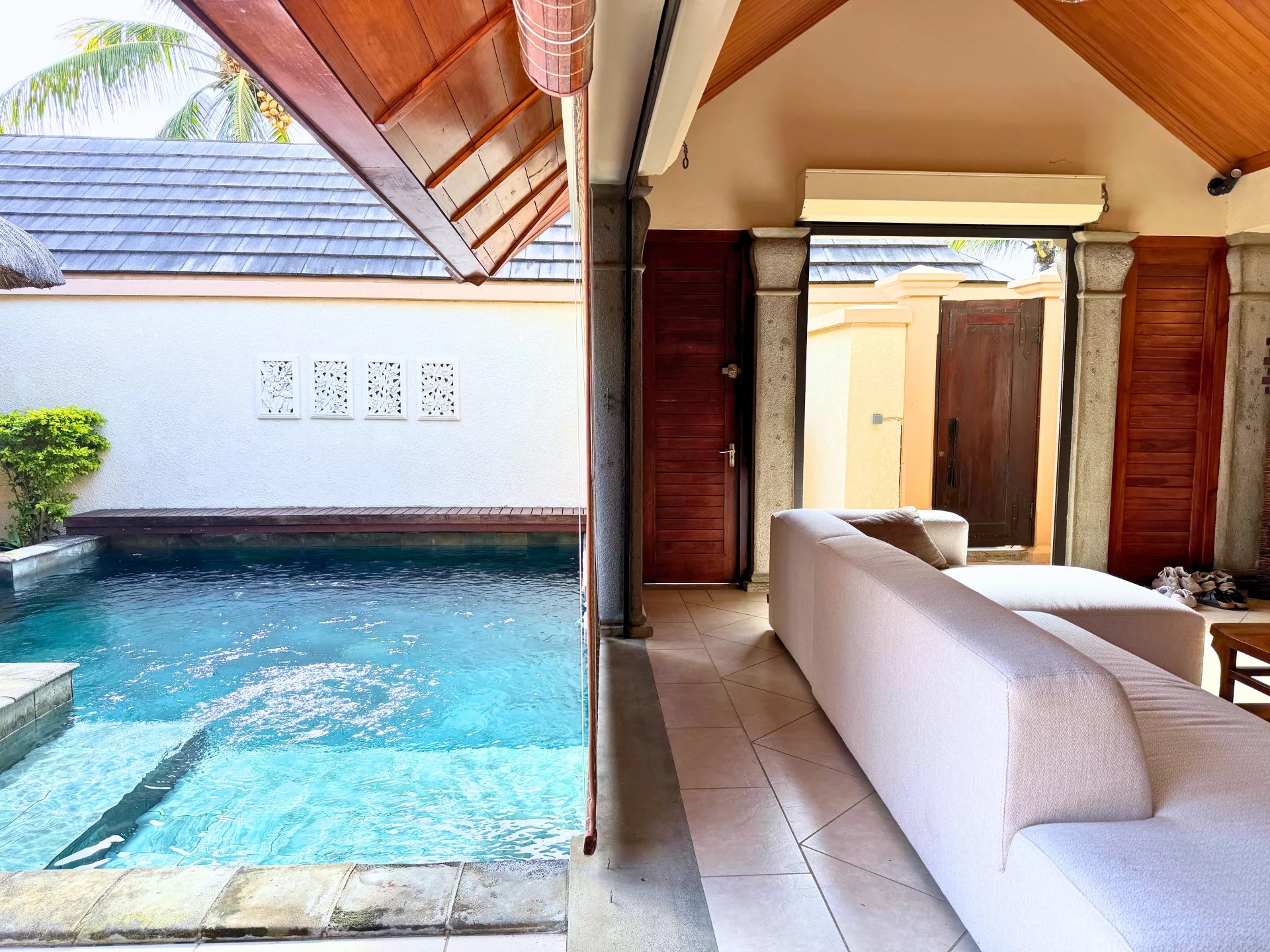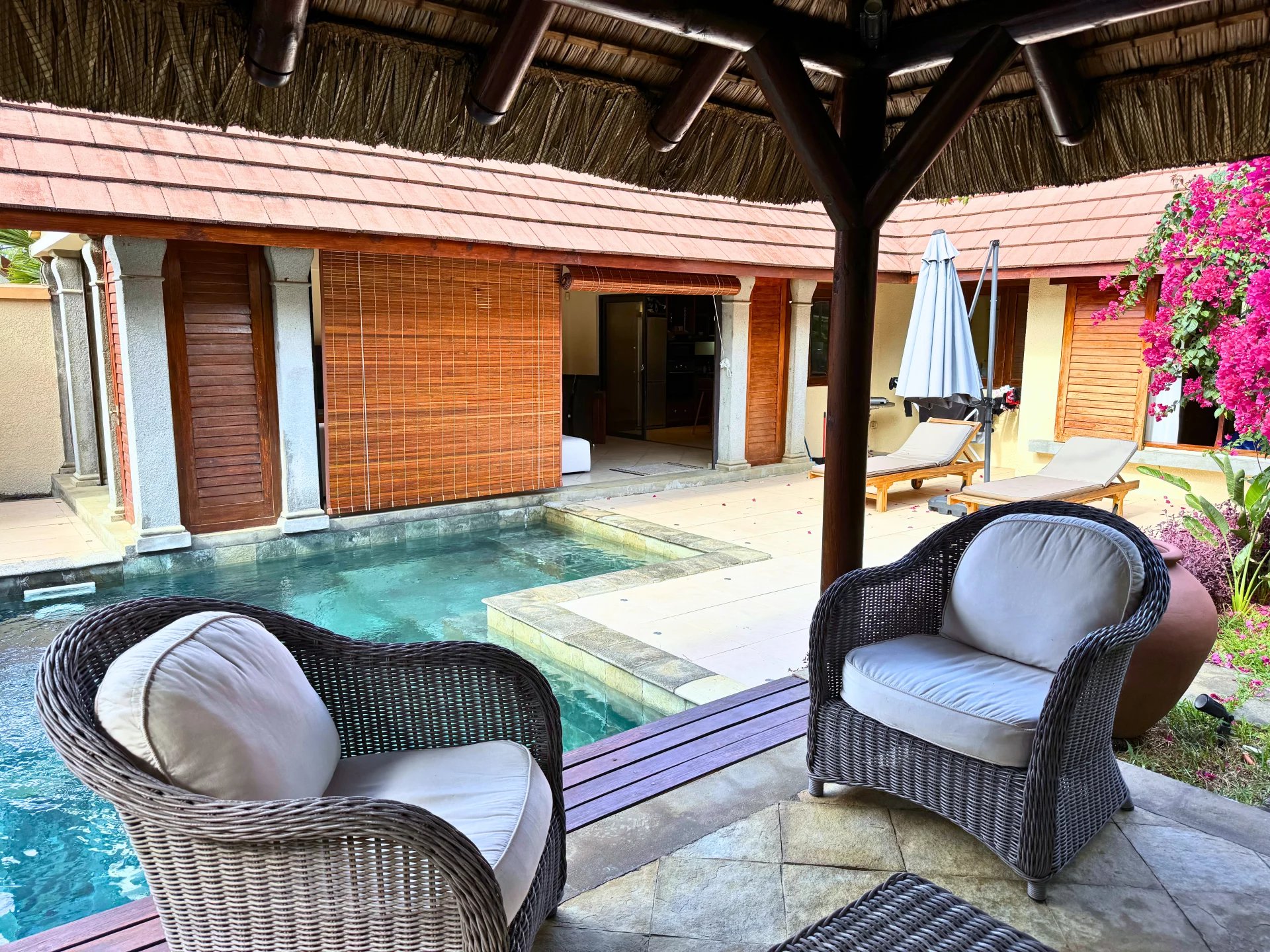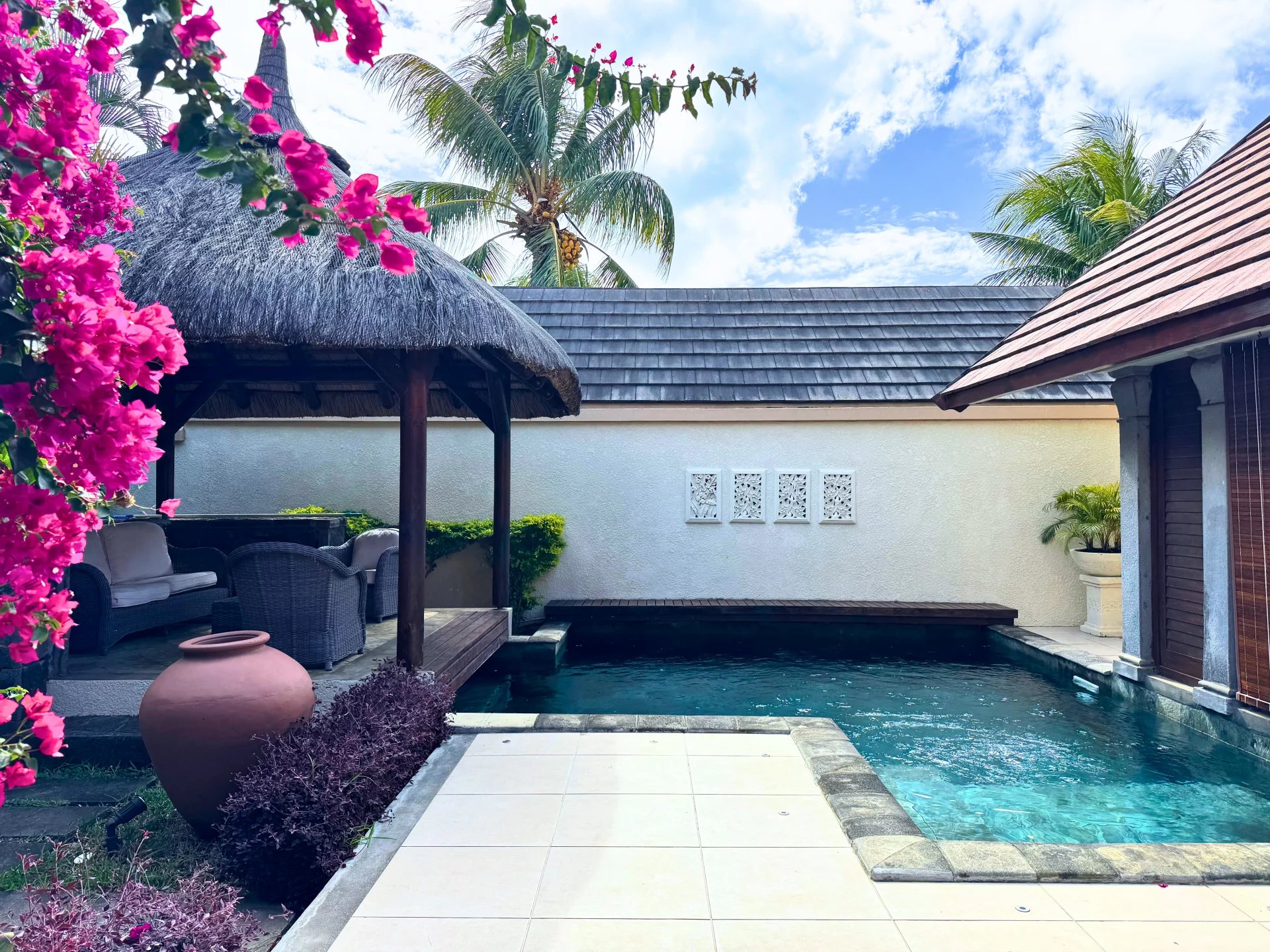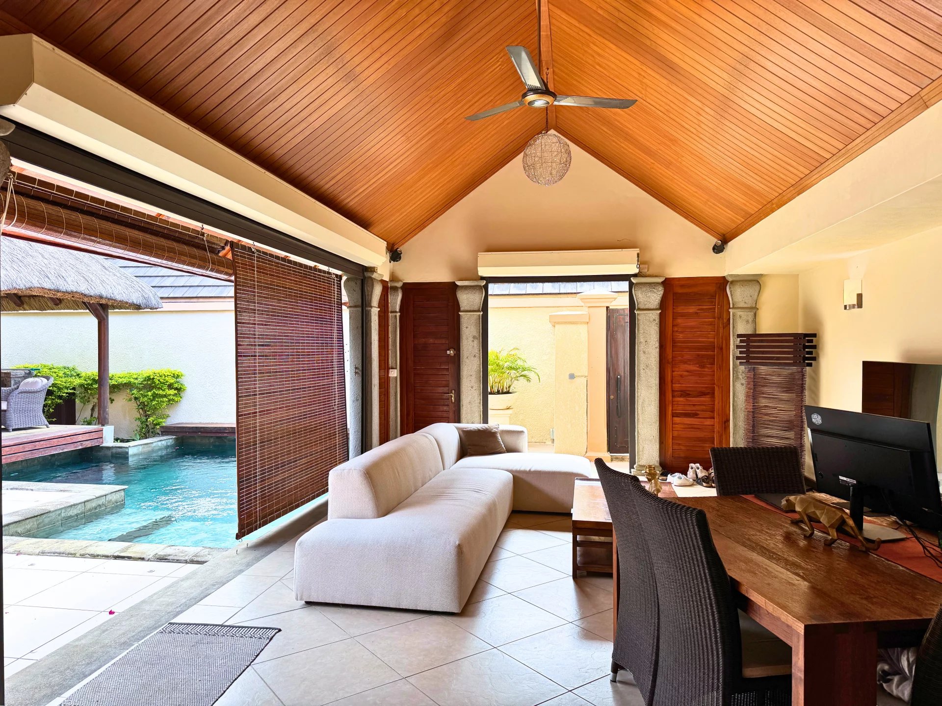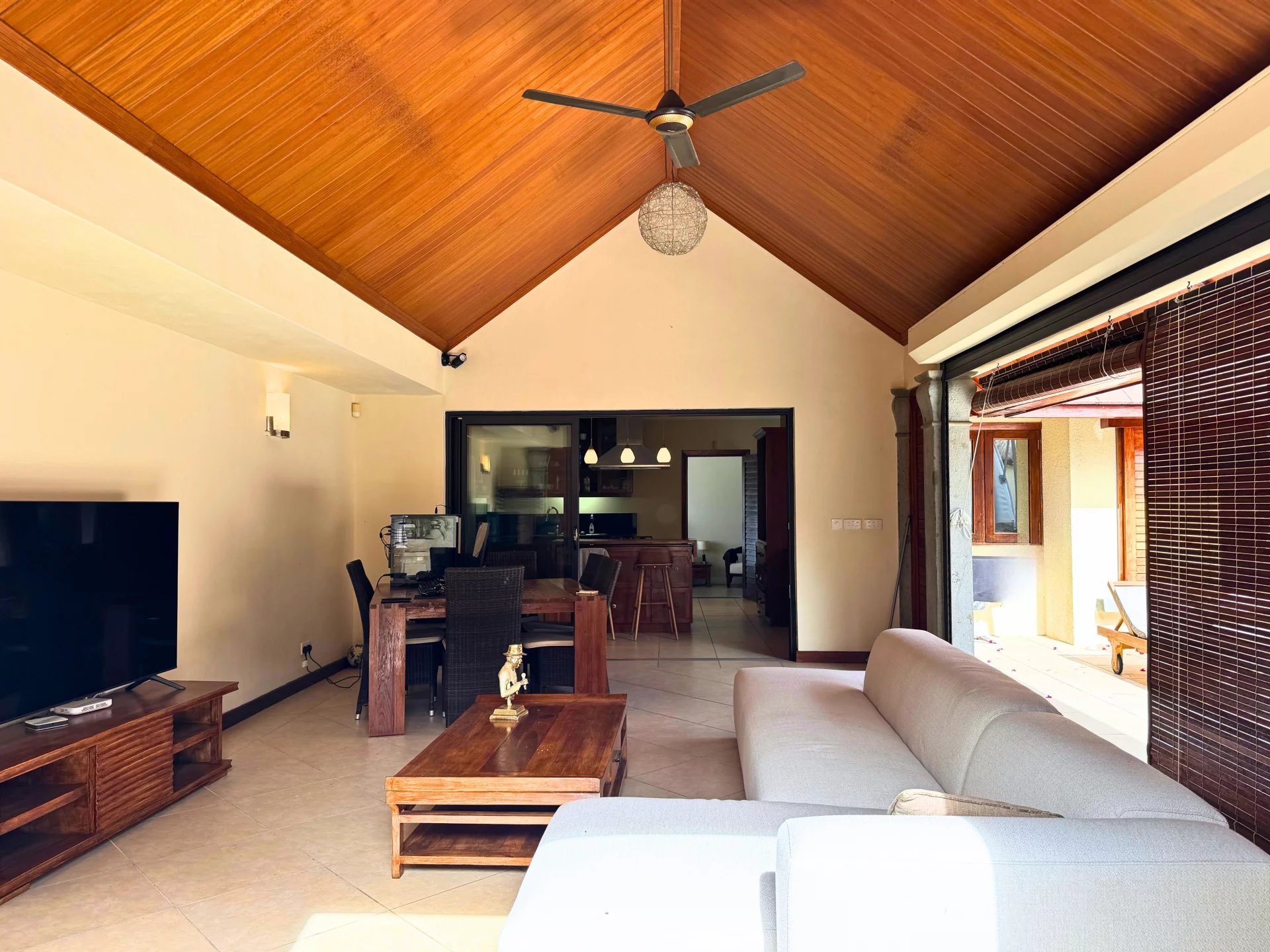 La villa se compose de trois chambres, dont une suite parentale avec grand dressing et salle d’eau ouverte sur un jardin intérieur. Le vaste séjour s’ouvre entièrement sur l’extérieur, créant une continuité fluide entre les espaces et invitant à profiter pleinement du climat mauricien.