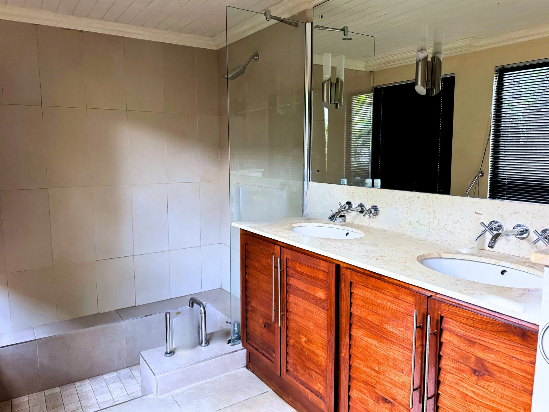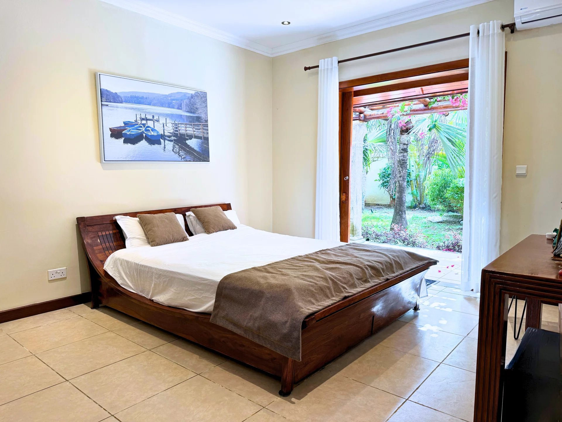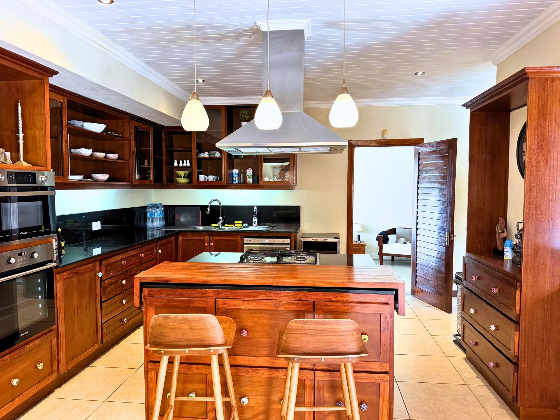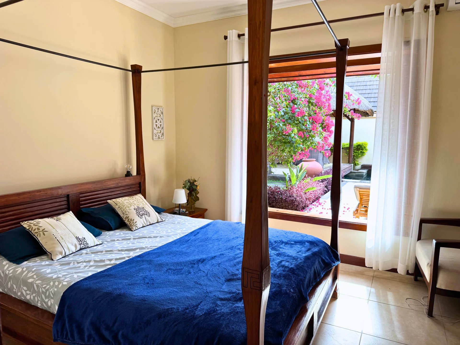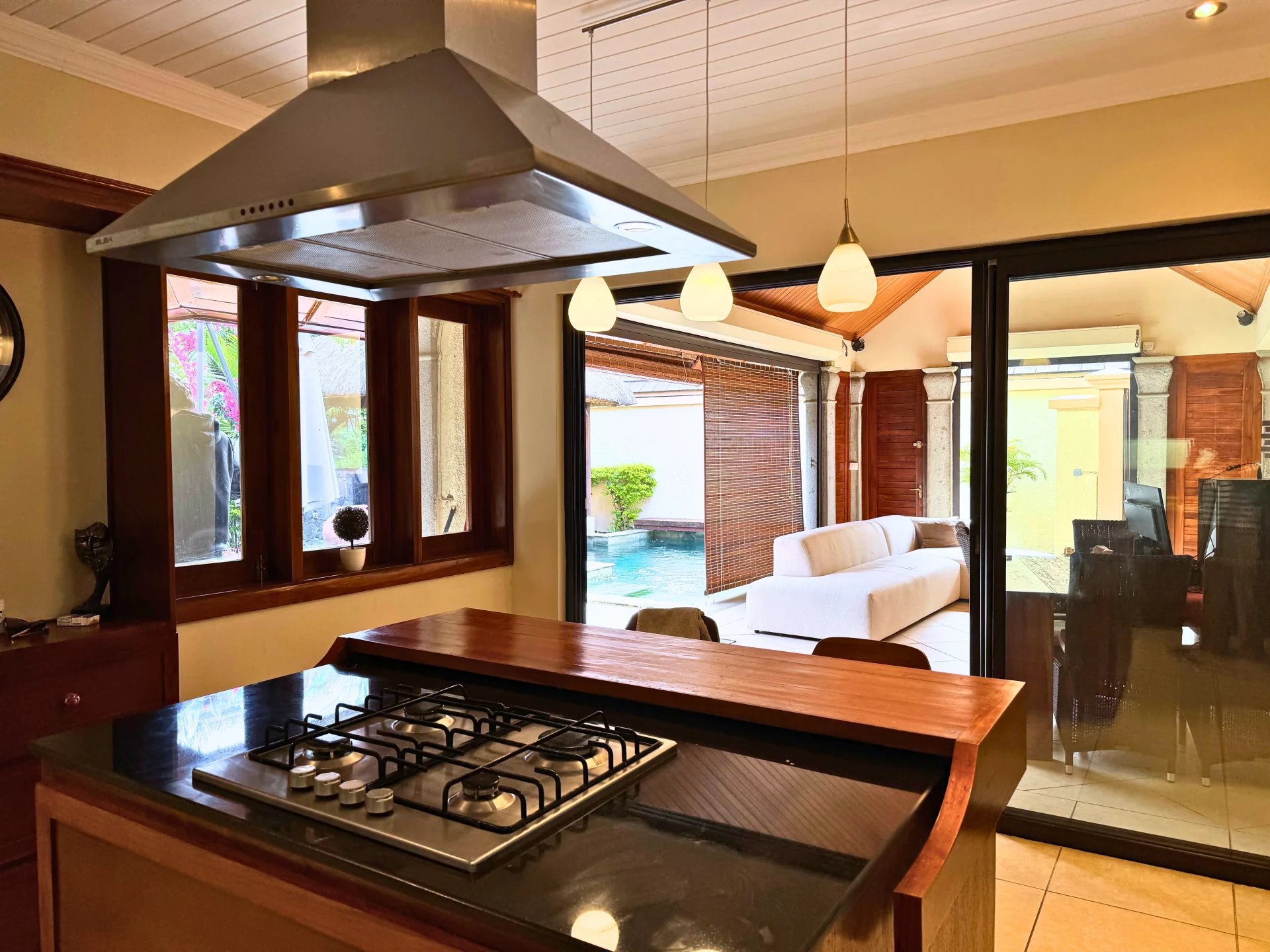 La villa se compose de trois chambres, dont une suite parentale avec grand dressing et salle d’eau ouverte sur un jardin intérieur. Le vaste séjour s’ouvre entièrement sur l’extérieur, créant une continuité fluide entre les espaces et invitant à profiter pleinement du climat mauricien.