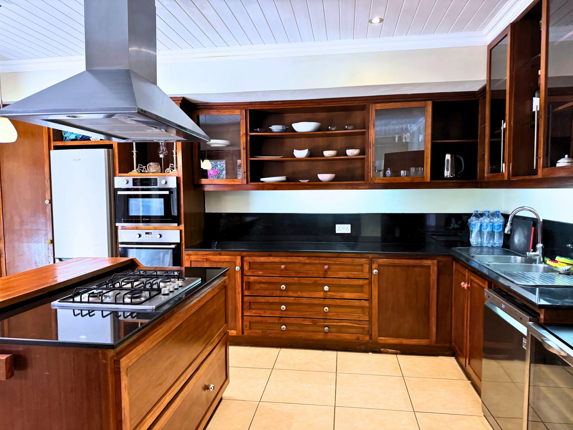 La cuisine, moderne et entièrement équipée, offre un environnement fonctionnel avec des électroménagers neufs. À l’extérieur, un magnifique jardin paysager entoure la piscine privée et un kiosque authentique, parfait pour des moments de détente en pleine nature.